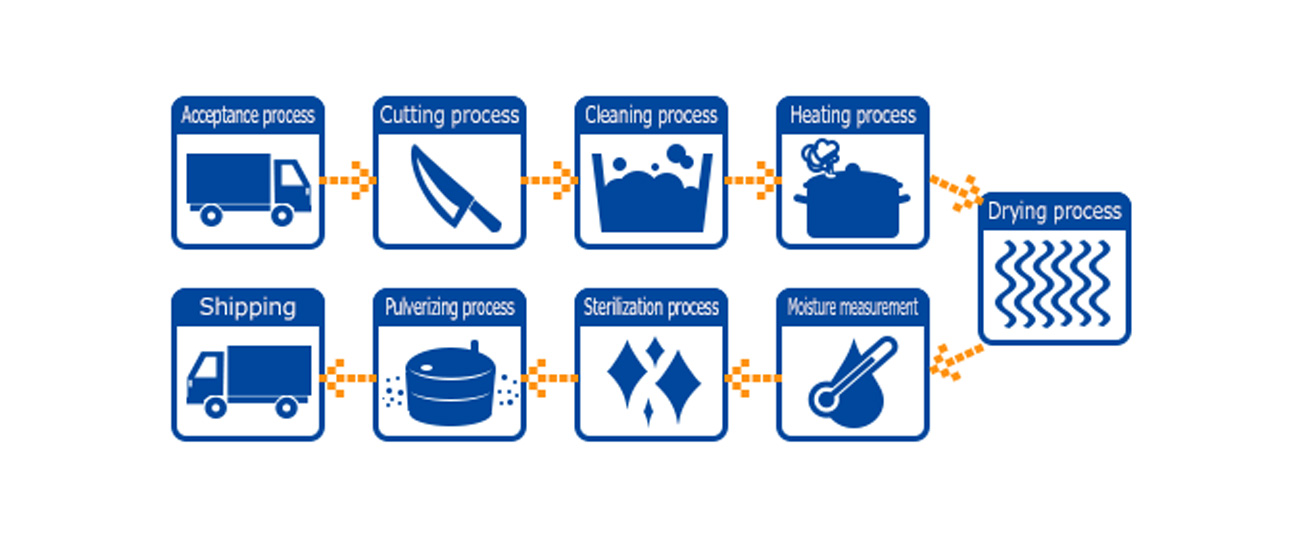 | 8.Pulverizing process | Considers pulverizing purpose, required particle size, processing volume, automation and products, and determine a proper pulverizing method and pulverizer. |